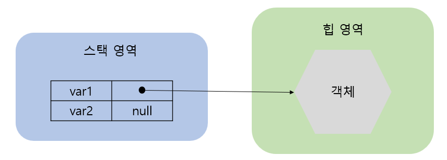 null은 힙 영역의 객체를 참조하지 않는다는 뜻으로 존재하는 특수한 상태 타입입니다.
