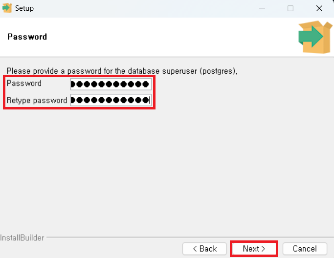 8. Root 사용자와 슈퍼 사용자의 비밀번호를 설정합니다. 잃어버리시면 안됩니다!!