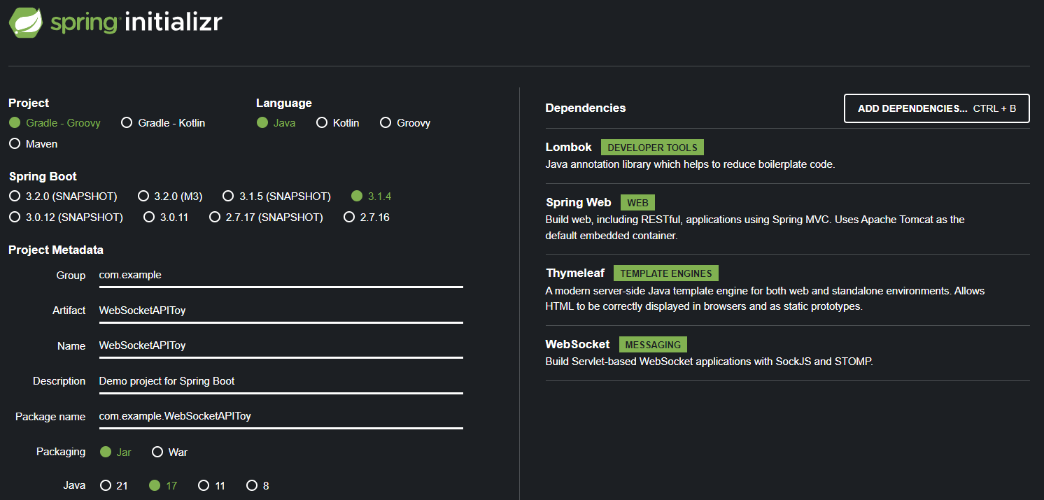 js 파일에서 볼 수 있듯이 앞서 WebSocket Configurer에서 설정한 주소인 ws/Handler로 연결을 요청하도록 되어 있습니다. 또한 웹소켓 연결이므로 http://가 아닌 ws:// 로 시작된다는 점을 확인하실 수 있습니다.