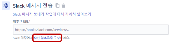앞서 보신 화면에서 "웹후크 URL" 하단의 [수신 웹후크를 구성]을 클릭합니다.