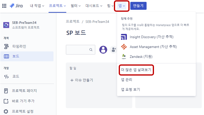 프로젝트 보드 우측 상단에 보면 번개 모양의 아이콘이 있습니다.